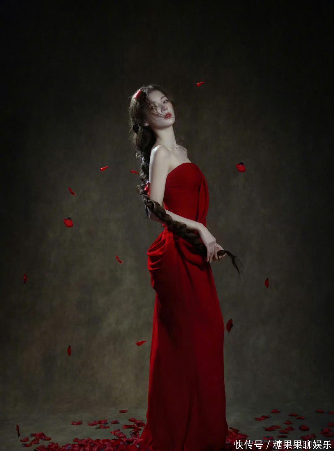 家人们,张予曦的新造型一曝光,我直接被惊艳到了!她穿了一条红色的抹胸长裙,那裙子的颜色鲜艳又饱满,在镜头下特别抢眼。她就像从古典油画里走出来的画中仙一样,美出新高度,这颜值真的太能打了!